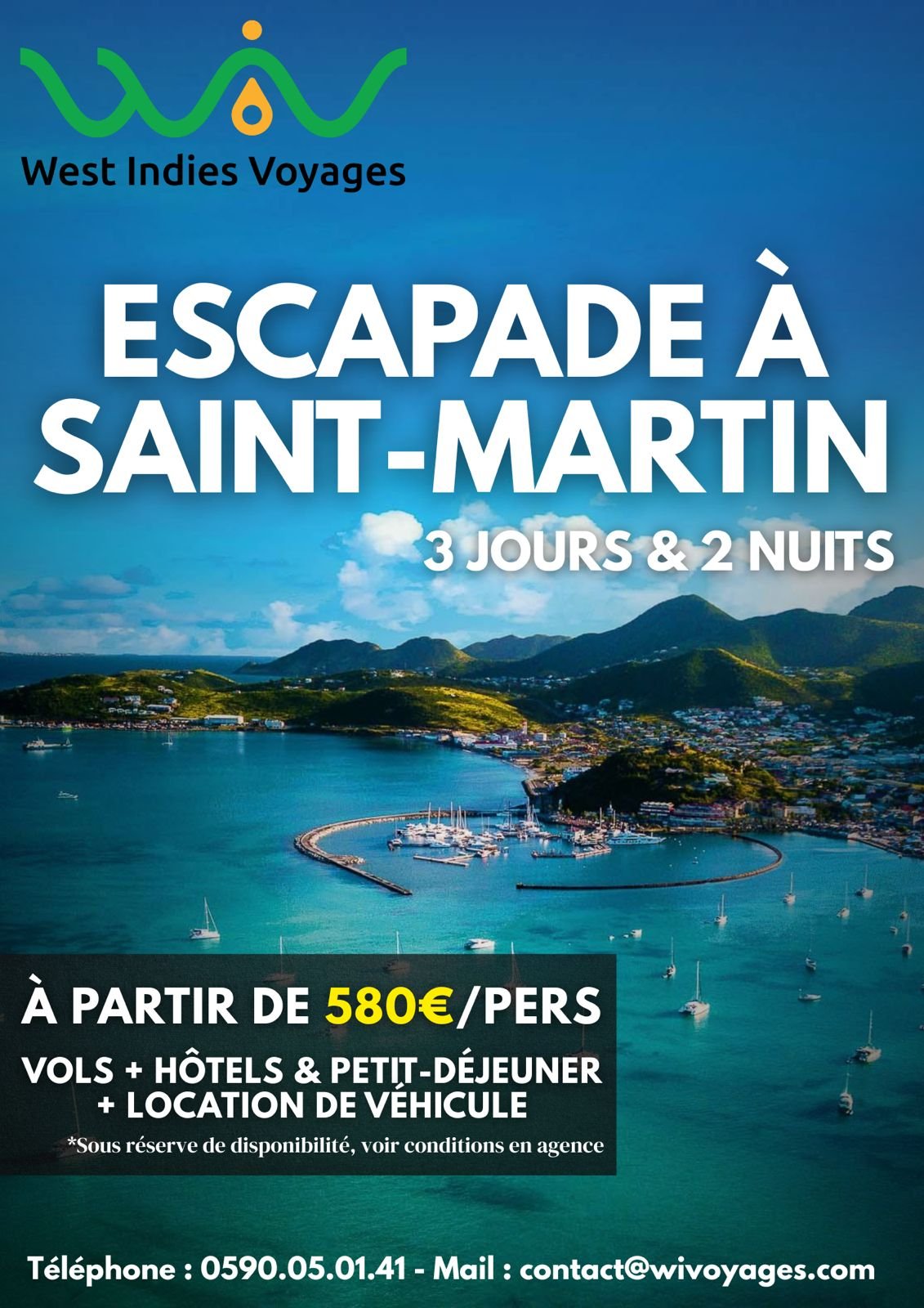 ✈️ 1 Week-end à SAINT-MARTIN : Vol + Hôtel + Petit Déjeuner + Voiture (valeur 580 €)